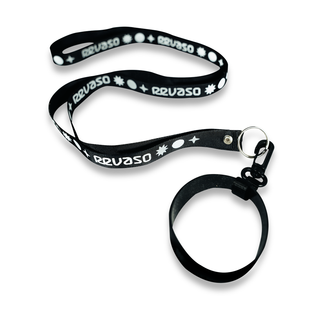 Hecha de polyester, ideal para llevar tu Revaso colgado del cuello. Se puede personalizar con impresión serigráfica a 1 tinta. Medidas doblada: 50 x 2 cm. Color disponible: negro.